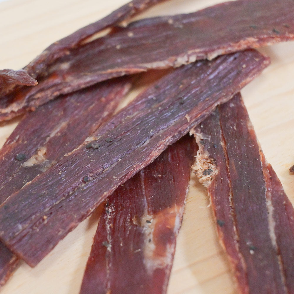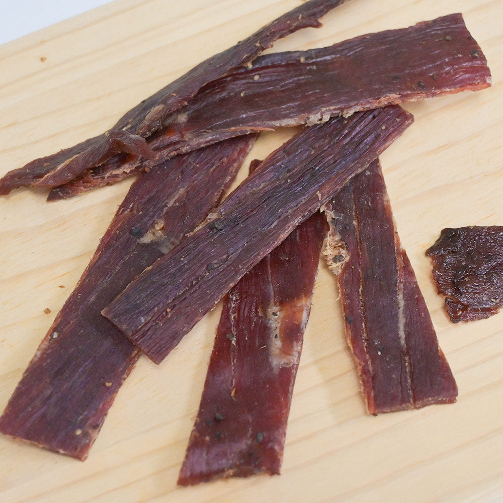 赤身牛肉を醤油ベースで味付けし、二回に分けてじっくり燻煙した香味の良いビーフジャーキーです。