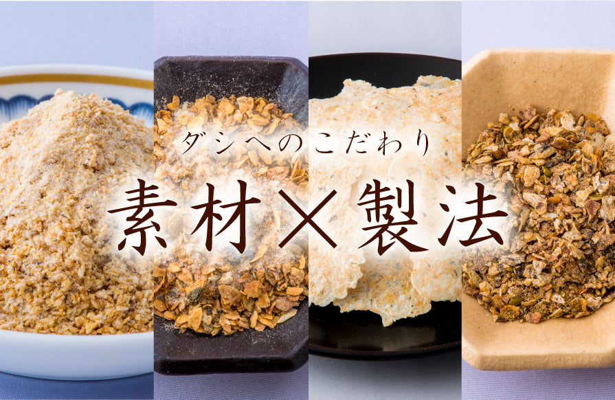 いりこを瞬間高温高圧焼成法で芯まで焼き上げ、昆布と椎茸の旨味を加えた「旨みだし」に仕上げました。