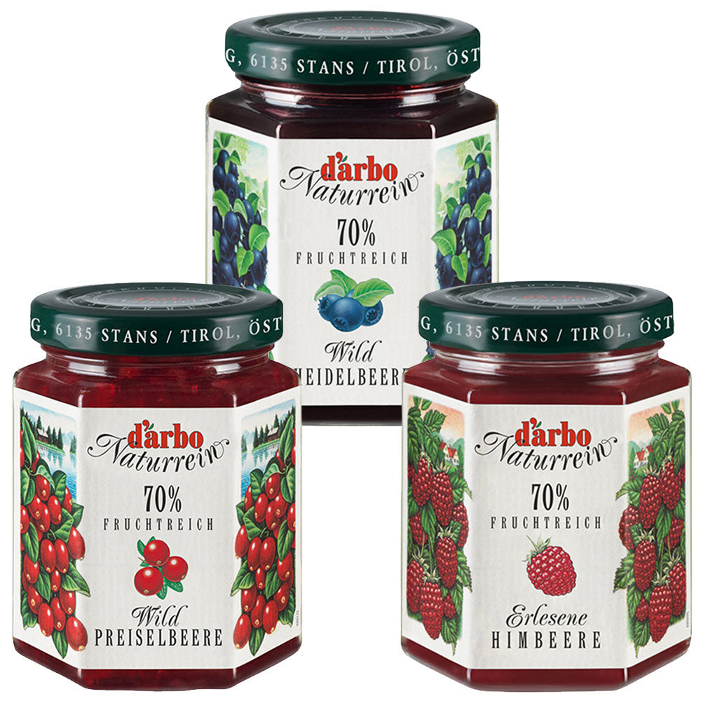 ダルボ ジャム3品セット ワイルドリンゴンベリー、ブルーベリー、ラズベリー 1瓶200g 送料込み 3本セット オーストリア ヨーグルト 甘さ控えめ ホテル人気ジャム