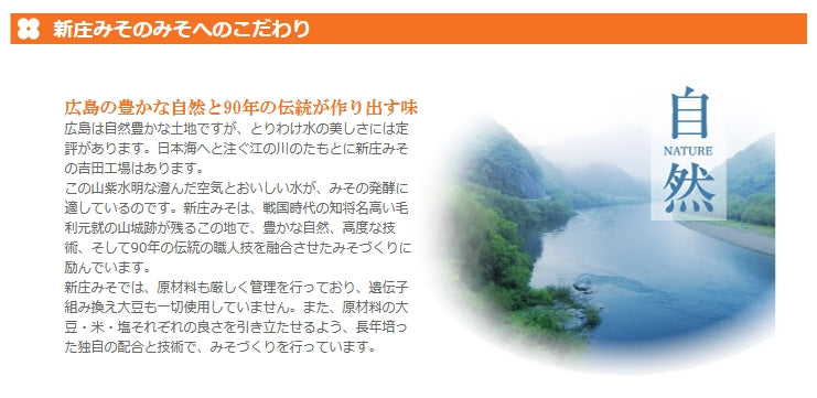 広島県産の牡蠣から、牡蠣エキスを抽出、そのエキスを鰹・昆布のだしと調合し、まろやかでコクの有る味噌に仕上げました。