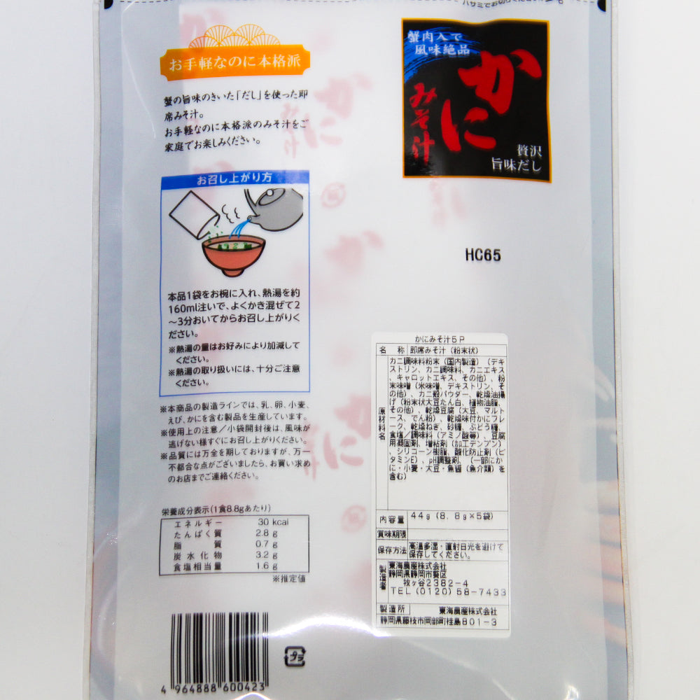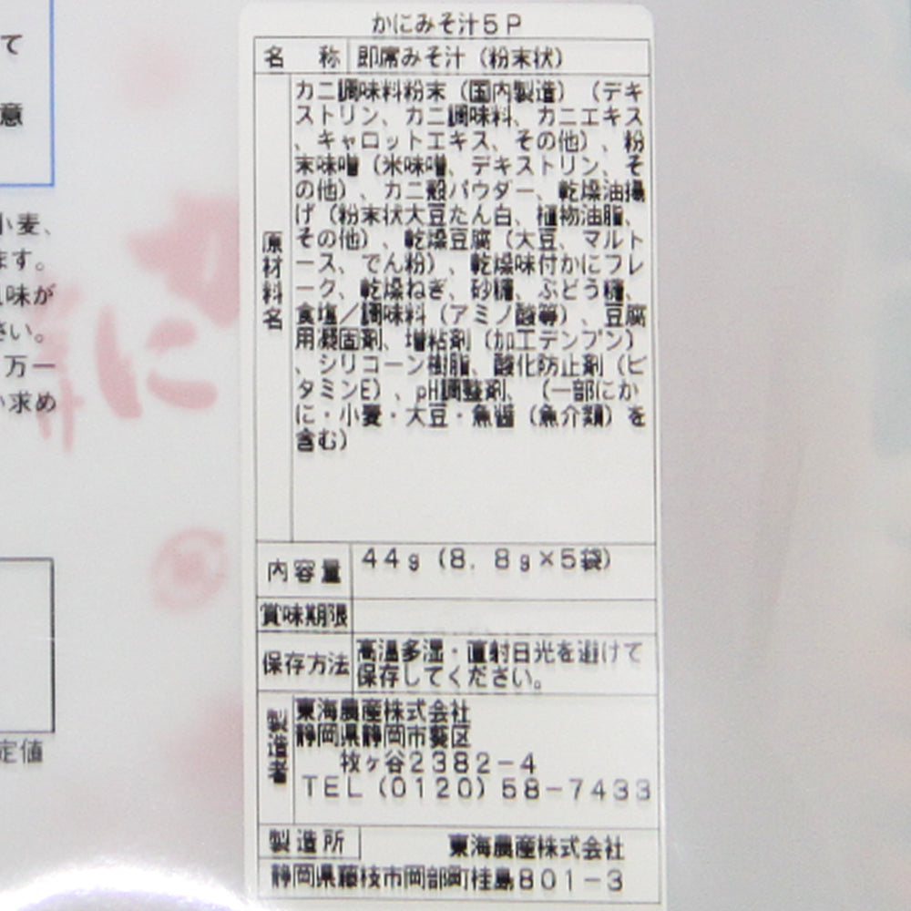 即席 かにみそ汁 5袋入り 44g(8.8g×5) 2袋セット 送料無料 蟹 道の駅 東海農産(株)