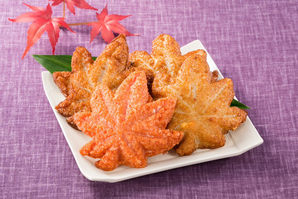 広島名物のもみじ型天ぷらです。たこ・かき・あなごなど瀬戸内の素材を使用しています。