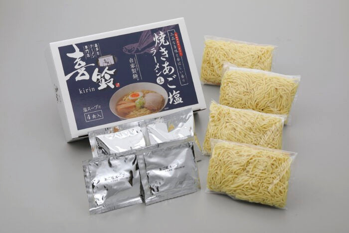 長崎県産の飛魚煮干しと北海道産の昆布エキスを使用し、魚介の旨味たっぷりの「焼きあご塩ラーメン」。