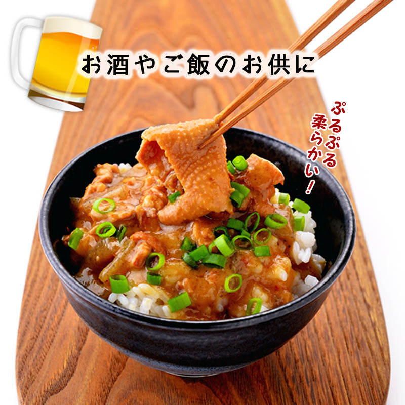 鶏の皮をじっくりと煮込み柔らかい食感に仕上げています。