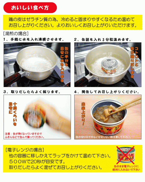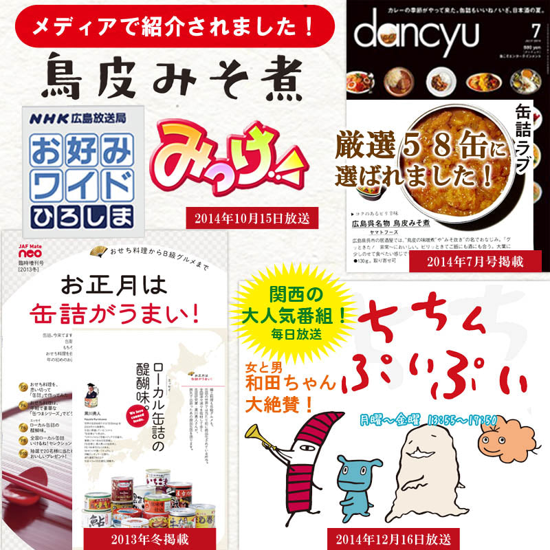 ぷるぷるの鳥皮を味わい深い3種類の味噌で煮込み、缶詰に美味しさを閉じ込めました。
