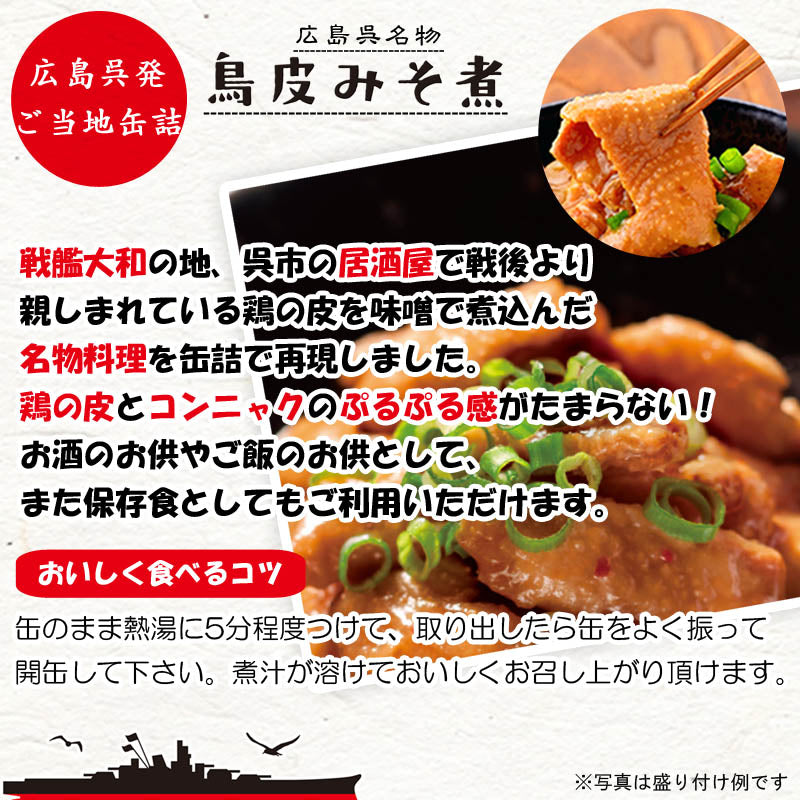 鳥皮 みそ煮 1缶130g 6缶セット送料無料 ヤマトフーズ TAU 瀬戸内ブランド認定商品