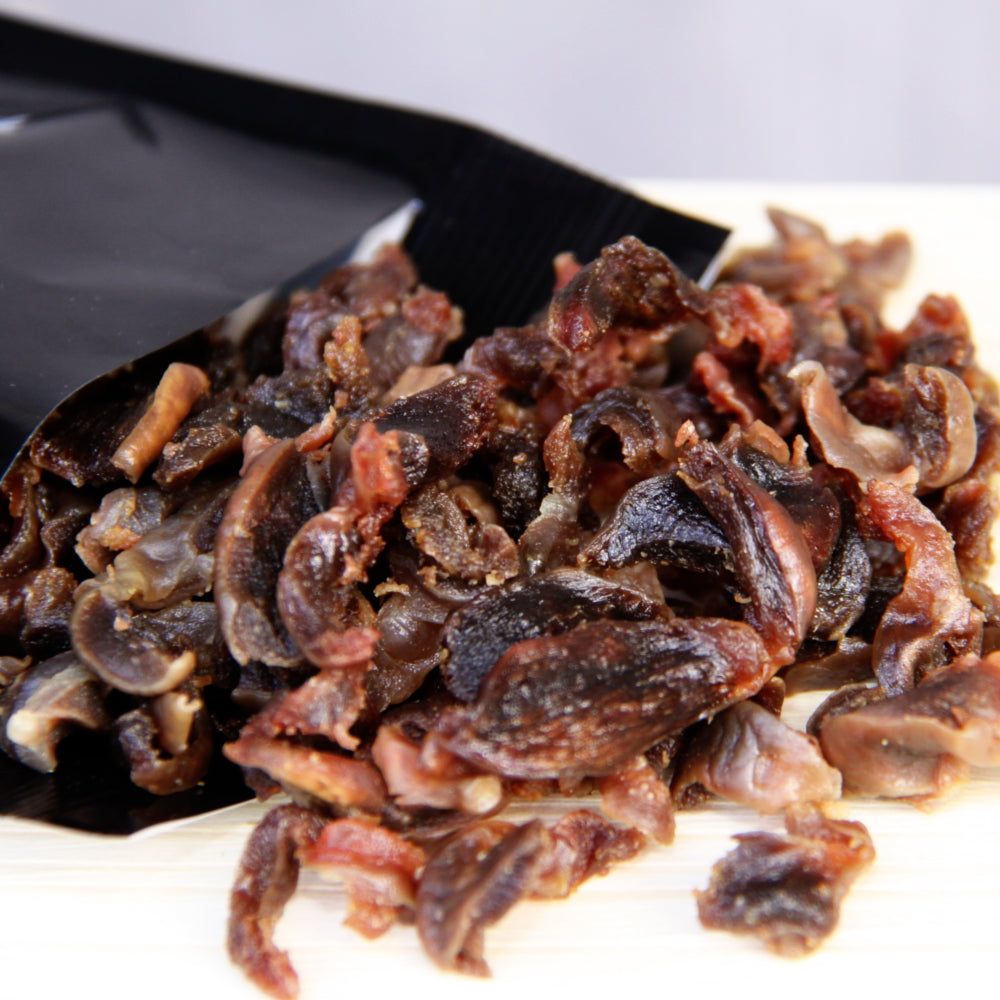 手切でスライスした砂肝を旨味を閉じ込めたまま水分をとばし、