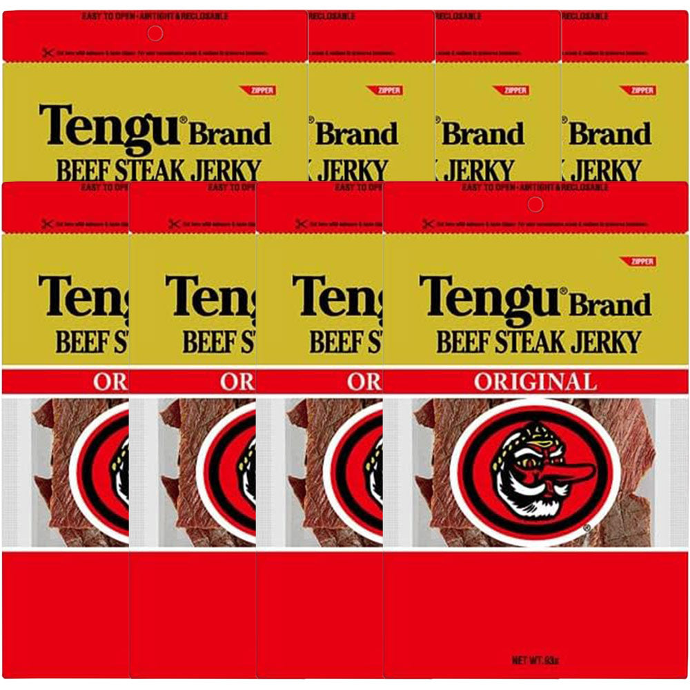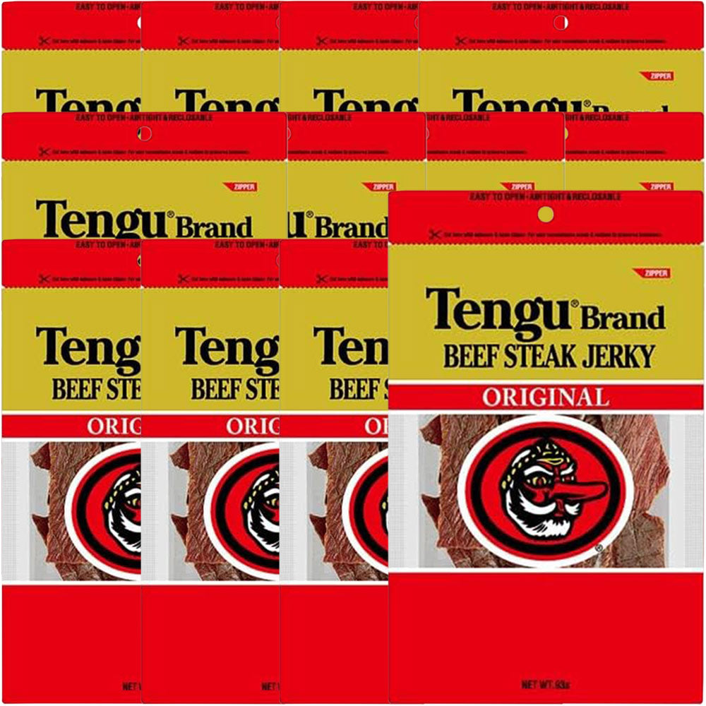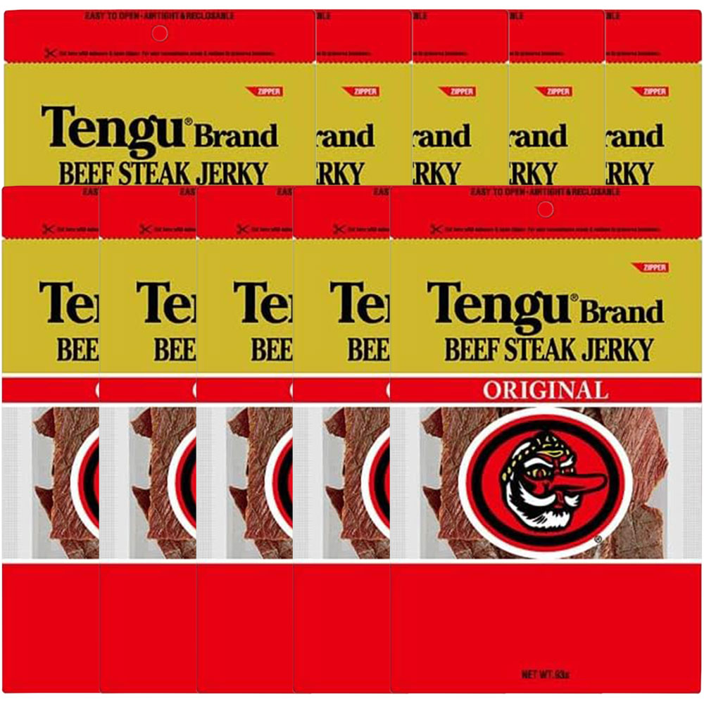 | 特徴 | おつまみの定番として大人気のテングブランドのビーフジャーキー! テングブランドのビーフジャーキーは厳選された牛肉を使用し、しょうゆをベースにした味付けになっています。 お土産等でおなじみの方も多いのではないでしょうか? 良質の牛肉を使用し、今までにない醤油をベースに味付けしたビーフジャーキーの美味しさは瞬く間に口コミで広がり常に輸入ビーフジャーキーのトップブランドとなりました。 現在は、国内でアメリカ産と同様に、醤油ベースの味付けで、ステーキ用牛もも肉をそのまま3分の1になるまで乾燥させた本物のストレートタイプのビーフジャーキーです。 しっかりとした歯ごたえがあり、ビーフそのままの旨みがあるテングビーフジャーキーは、お子様のおやつや、お酒のおつまみに最適です。 ※日本語がパッケージにプリントされています |
